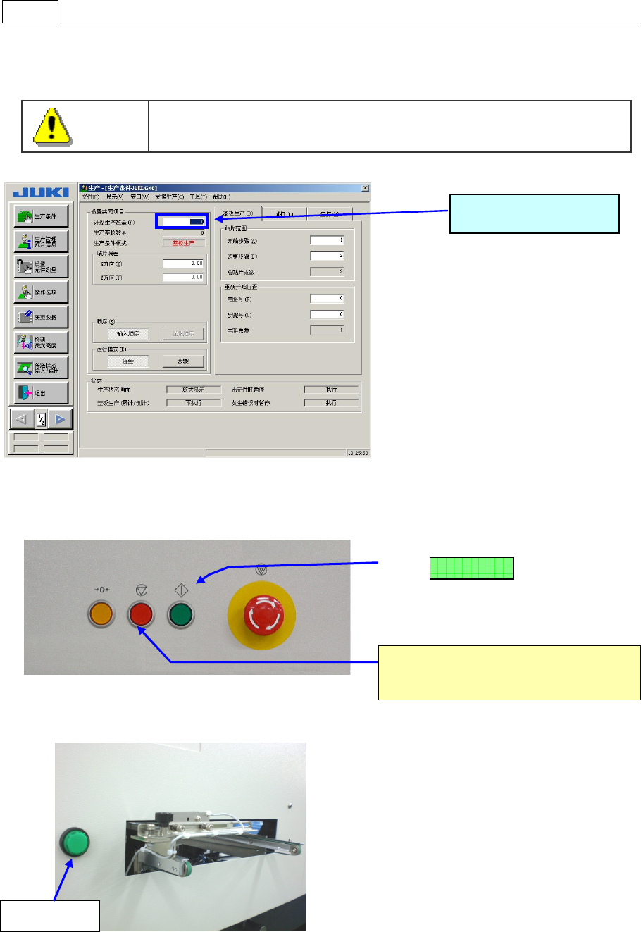 生产即开始。(生产画面的详细内容,请参见『操作手册Ⅱ』的“3-2-2 生产条件画面”。)