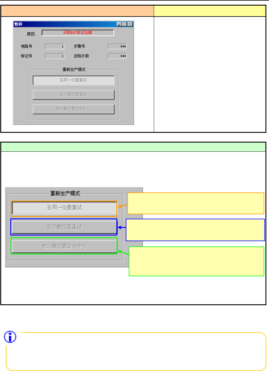 1) 遇到「激光脏污错误」时,贴片头将移动到前面后暂停。