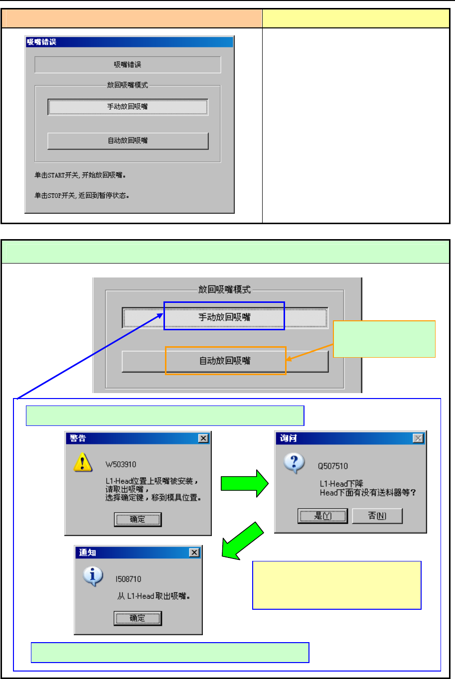 1) 请选择「放回吸嘴模式」,按下开始开关。