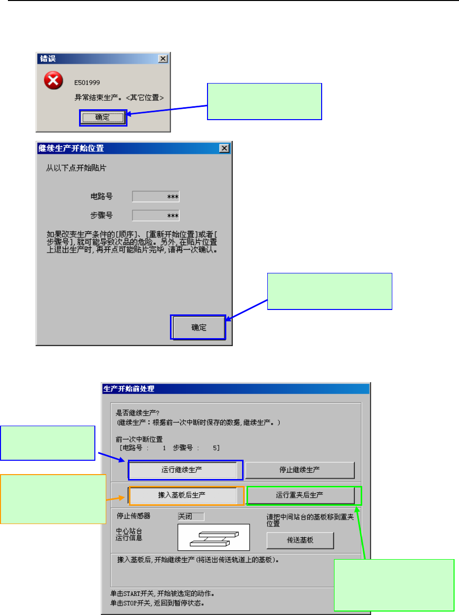 生产异常结束后直接采取恢复措施时,按下开始开关后显示如下画面。