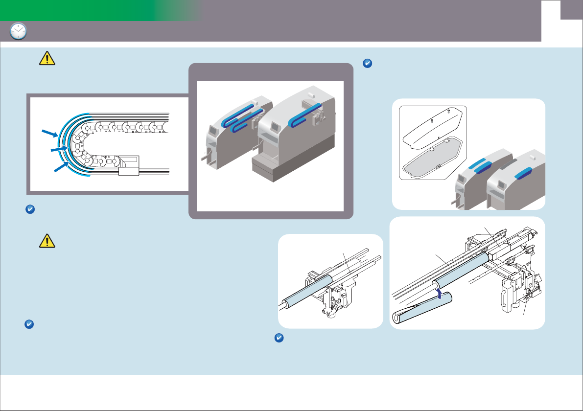 42 每4,000小时(每6个月) XY 机械手 为 为 Y 轴平型电缆加油 轴平型电缆加油 加油量如下所示。请适量涂敷润滑油。 加油位置沾染污垢时,请使用干净的布擦拭。 请向平型电缆的表面和电缆与电缆之间 涂敷润滑油。 M3-3, Y 轴平型电缆(左侧): 1.2 cc M3-3, Y 轴平型电缆(右侧): 0.8 cc M6-2, Y 轴平型电缆: 3.0 cc 线性马达 线性标尺 请不要在距离筋板 50mm 的范围内涂敷润滑油。 …