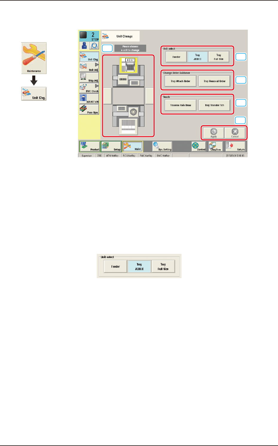 OM-1754 3-2 1303-001 1.2 "Unit Change" Window [1] [2] [3] [4] [5] "Unit Change" window FC2 [1] Unit Image The image of the unit currently selected is displayed in this section. [2] Unit select The sel…