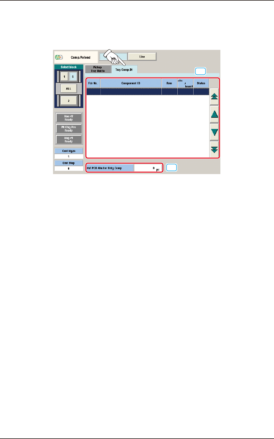 When the [Tray Comp.Dt] tab is pressed in the "Comp.Reload" window the "Tray