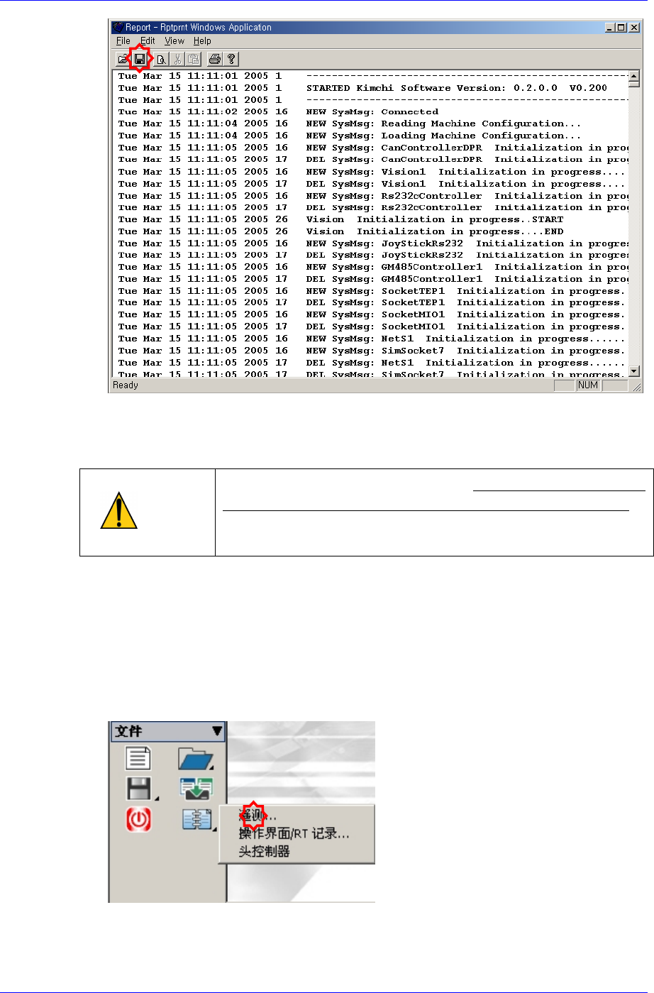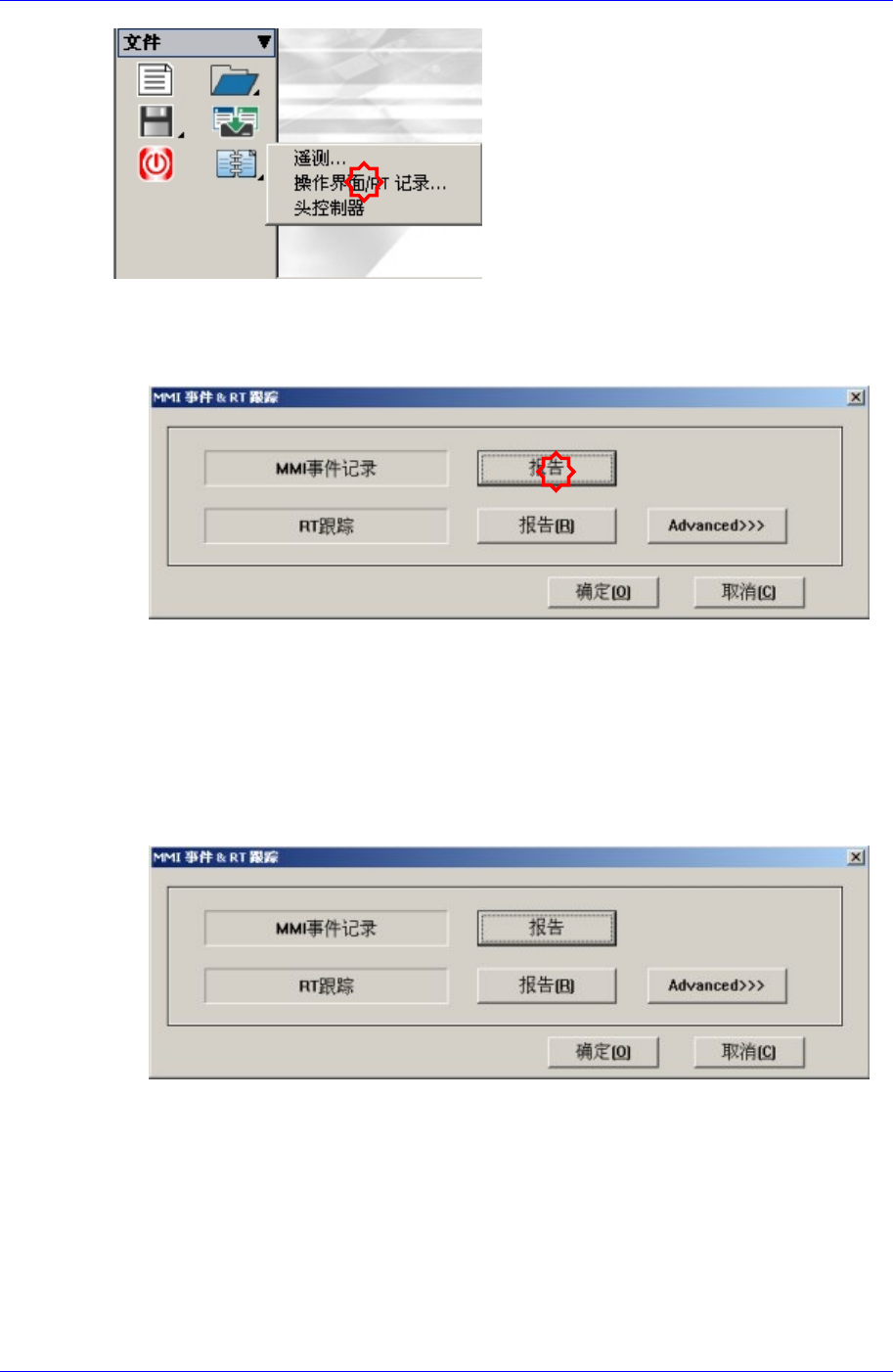 接受属于 RT 的 Trace 的当前文件。 最多可以储存 5Mbyte。 请点击<Report>