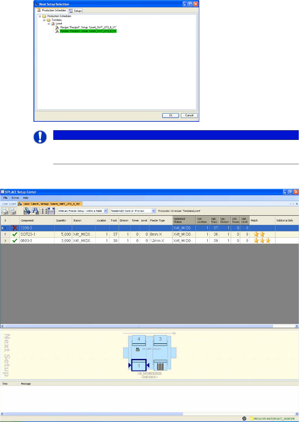 Working with the Setup Center Application Plausibility Check - Missing Refill N ext Setup in Setup Center User Guide SIPLACE Setup Center 5.1 12 3 7.6 Next Setup in Setup Center The next setup can be conven iently config…