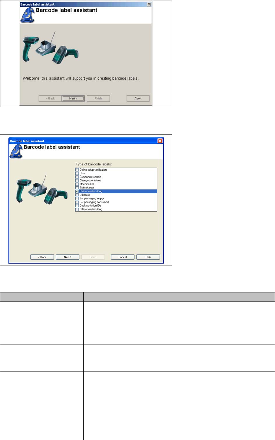 The Barcode Label Assistant enables you to print out barcodes needed for the operation of the SIPLACE