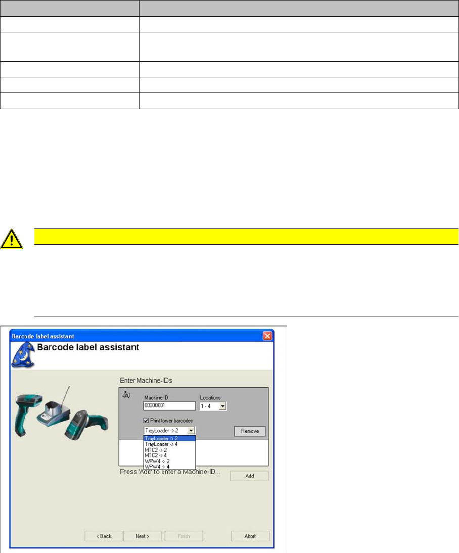 line. The machine IDs in the configuration dialog are integrated into the barcode.