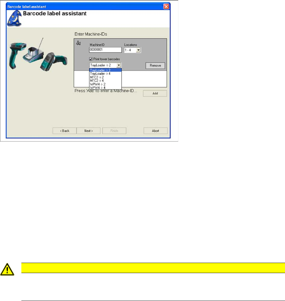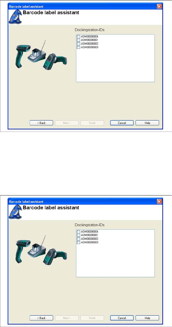 The following dialog box appears if barcode labels are needed to unambiguously identify docking sta-