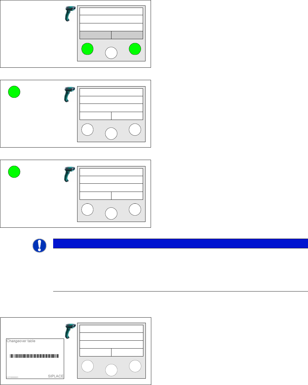 In this case, a message in the barcode scanner display informs the line operator of the situation. Setup