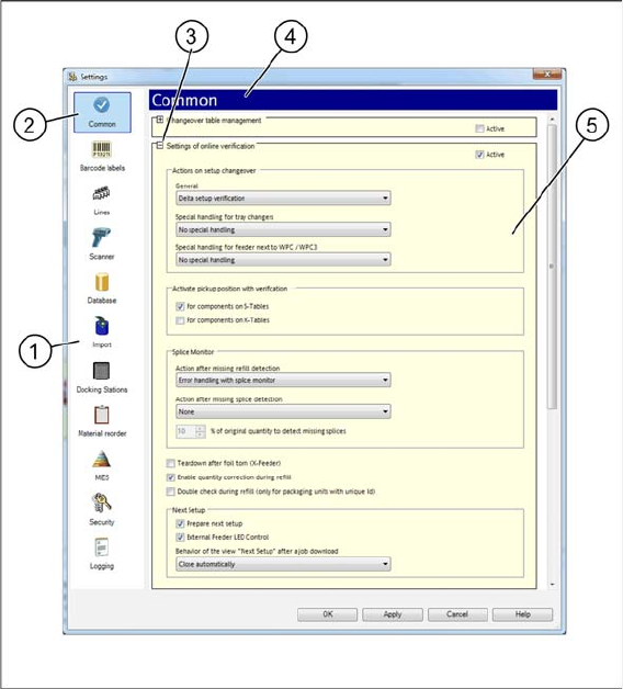 You can define the general settings such as Language, Security and Setup Verification for SIPLACE Set-