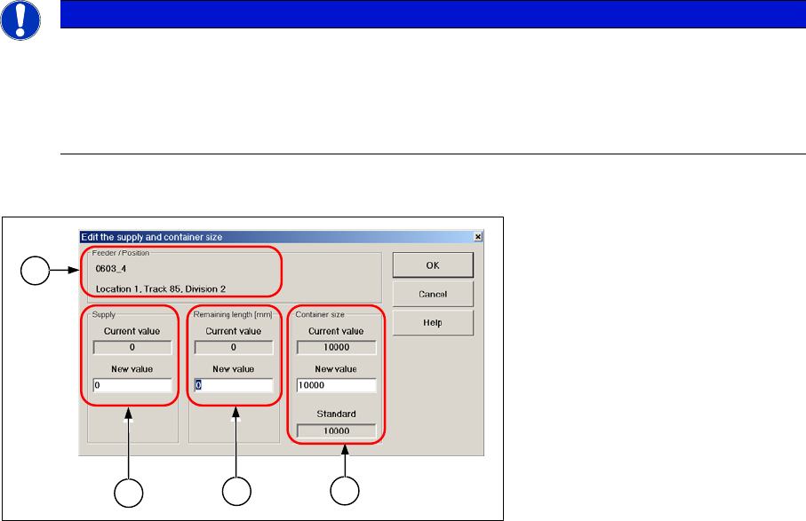 3. Remaining length [mm]: Length of the reel – measured from the trailing edge of the feeder.