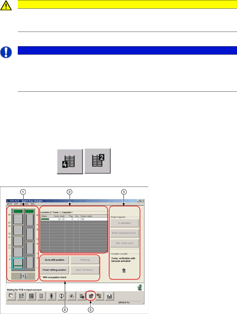 The functions for the Matrix Tray Changer (MTC) can be started with the MTC switch in the toolbar with