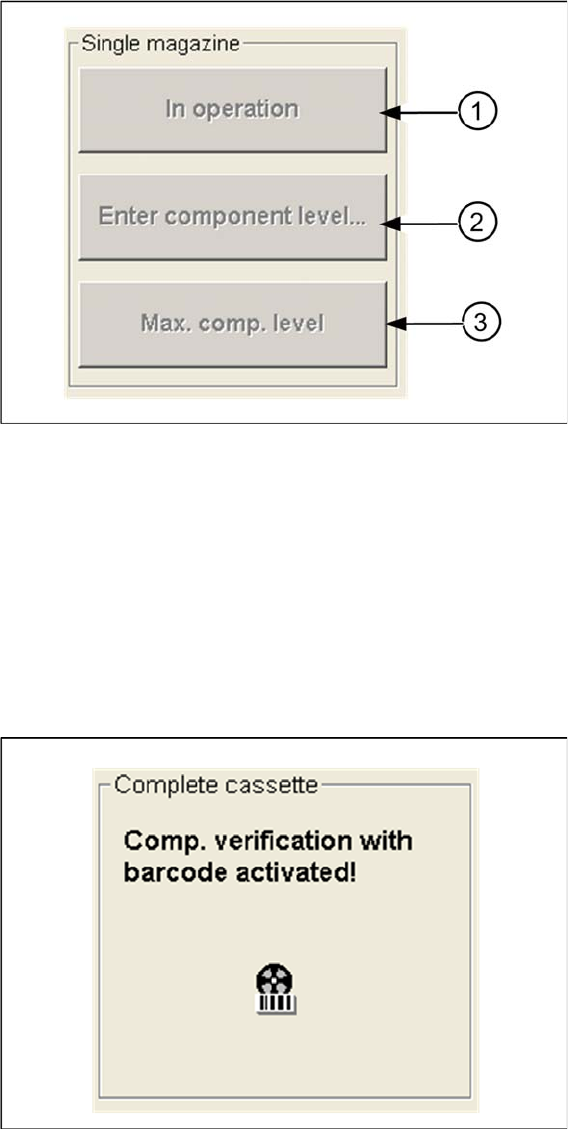 Setting System Components Component Level Indicator Station Software Settings (from Version 60x) User Guide SIPLACE Setup Center 5.1 61 Single Magazine Buttons for correcting the component levels: 1. In operation / out o…