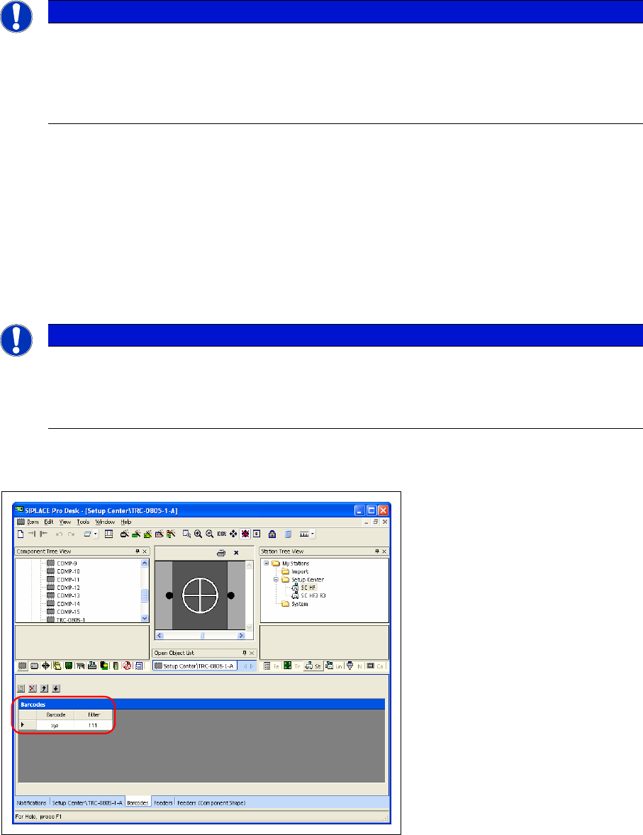 Setting System Components Settings in the SIPLACE Pro Programming System Supplier Barcodes 74 User Guide SIPLACE Setup Center 5.1 4.3.5.2 Traceability This setting specifies whether a component is relevant for capt uring…