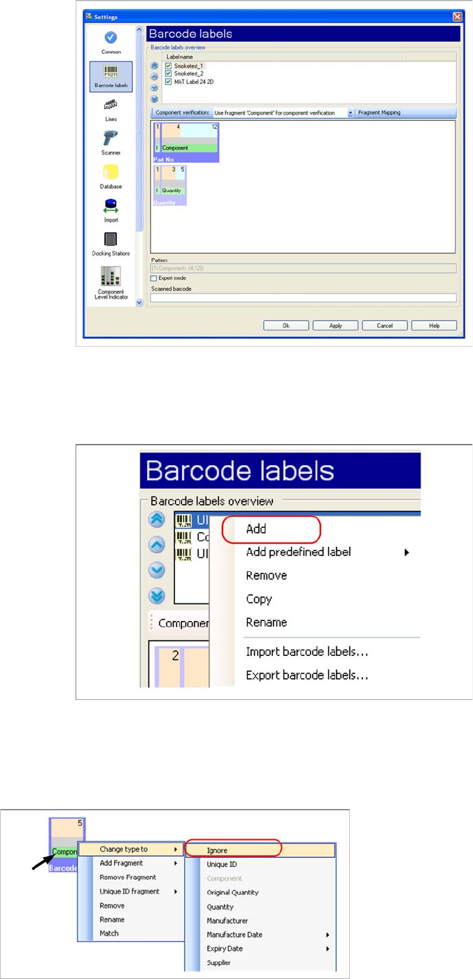 A Fragment type can only occur once within a barcode label. The barcode fragment type "Ignore" is an