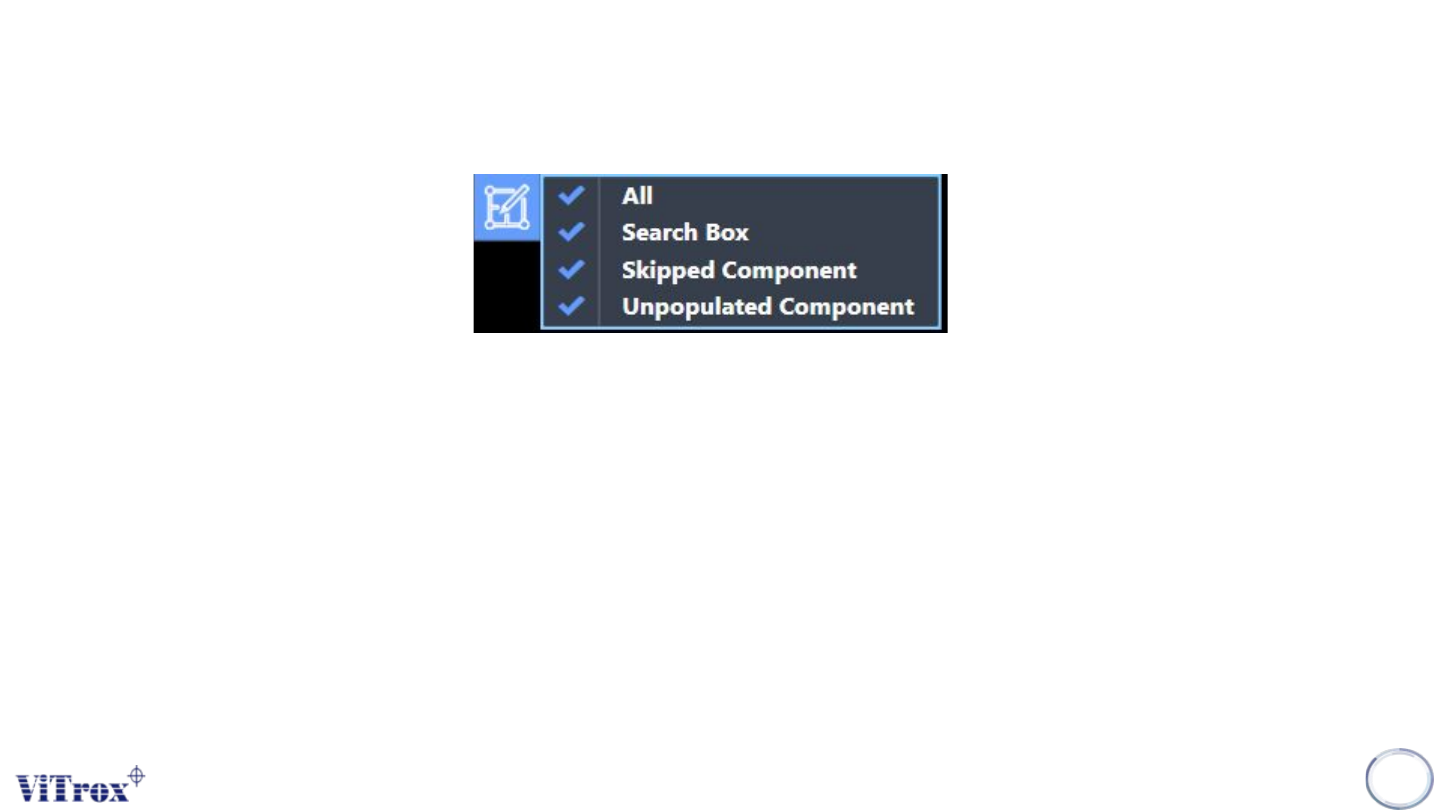 Copyright © ViT rox All Rights Reserved . Filter Display Filter Display of Component Geometry is used to set the display in board graphic. A drop-down menu shows after clicking the button and comes with four selections w…