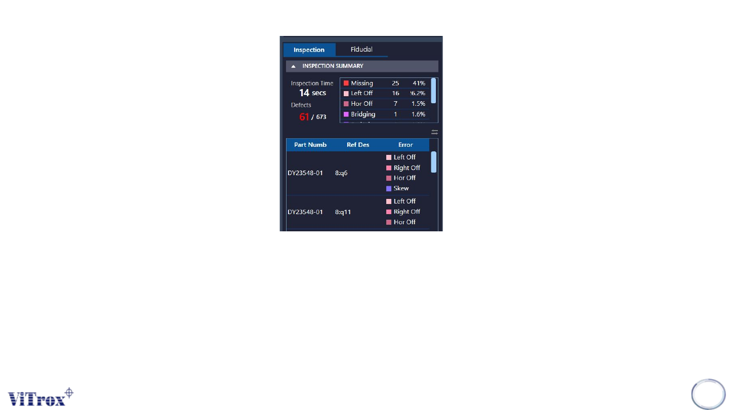 located at right panel of the SmartG. During the end of inspection, the inspection result shows a summary and list which include: