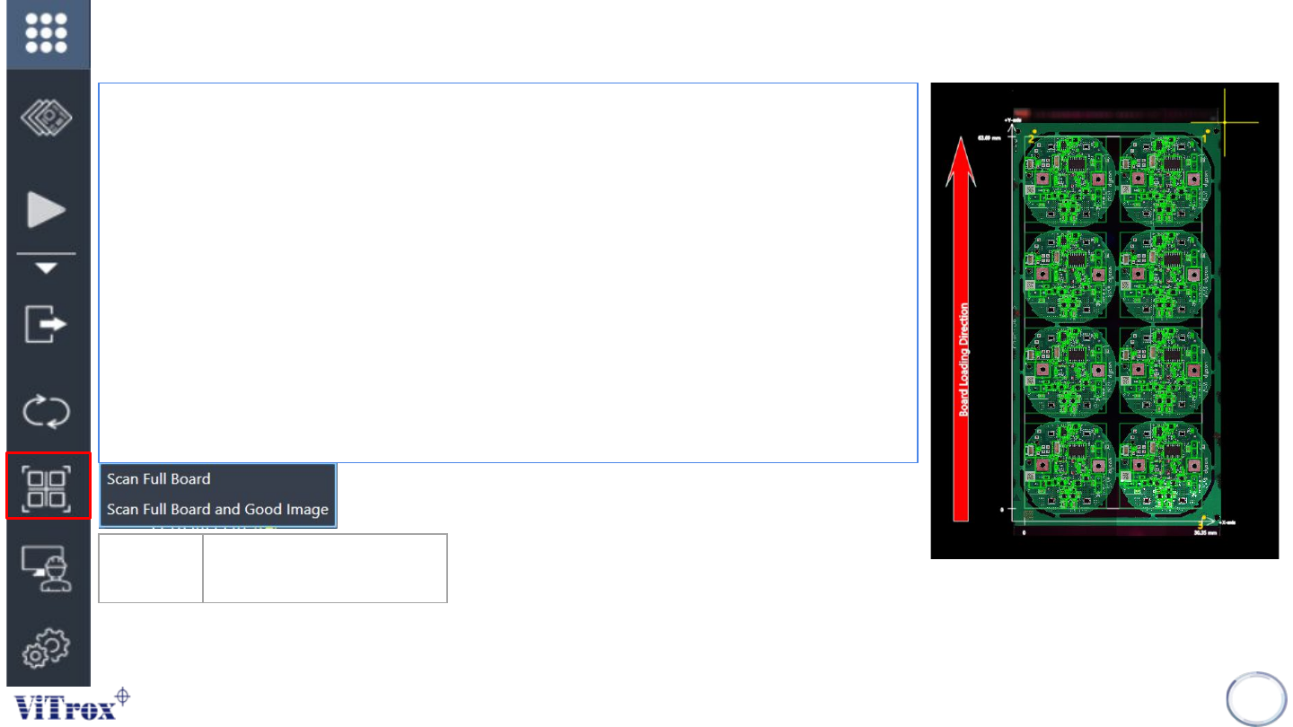 Copyright © ViT rox All Rights Reserved . Scan Full Board • Scan Full Board is a feature to inspect the full board without inspect components. • After scanning the full board, the board graphic is displayed in full-board…