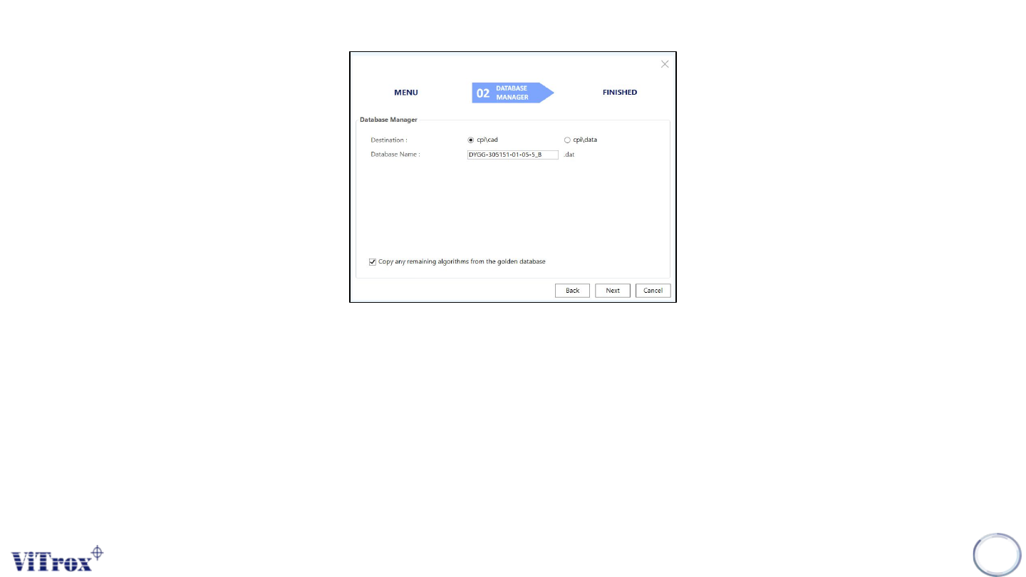 for empty database. The golden database contains the ViTrox recommended device type to ease users to train the