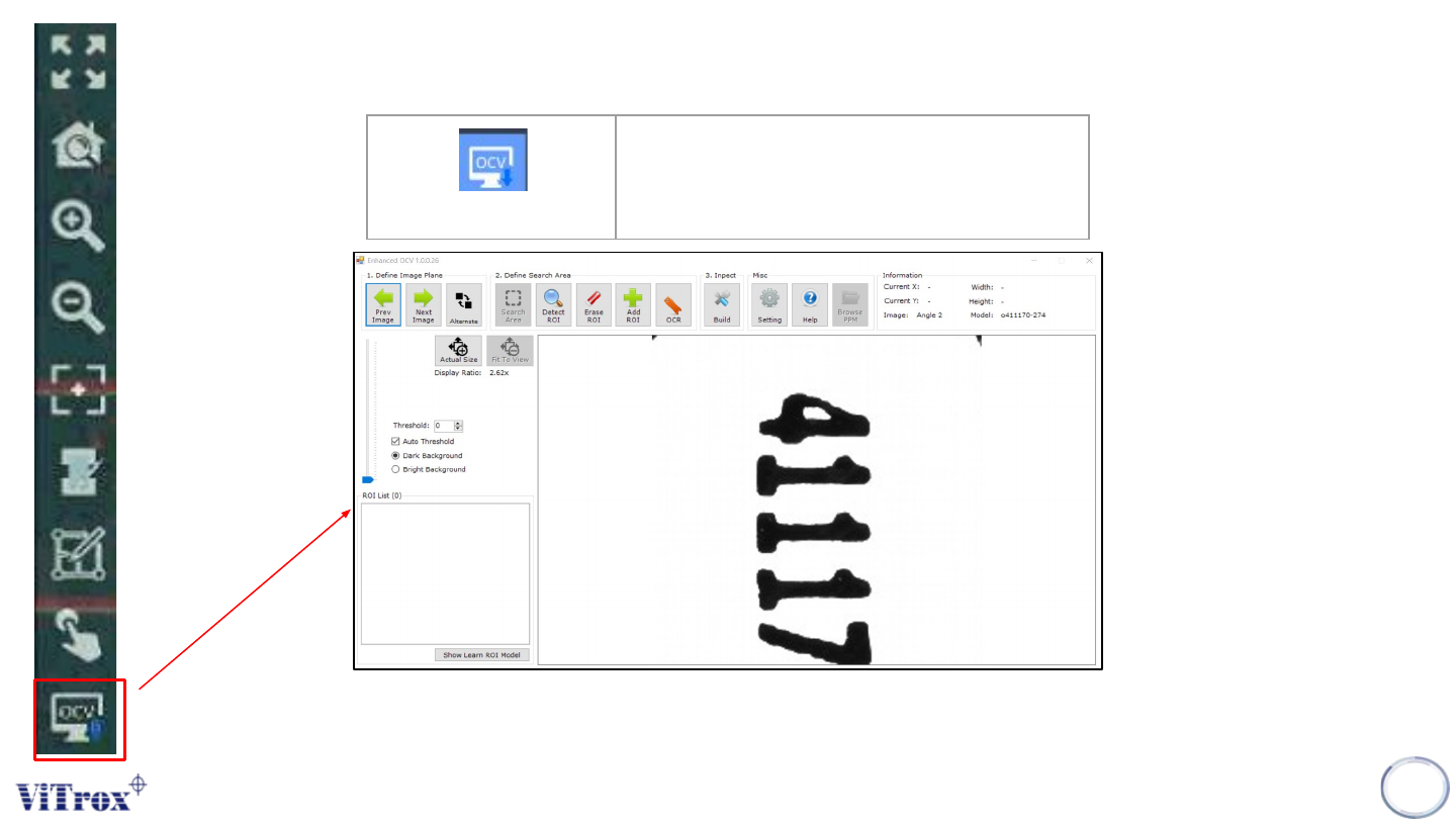 Copyright © ViT rox All Rights Reserved . EOCV Note: (Shortcut key) User can enhanced OCV in List of tool box 152 EOCV Execute EOCV Figure 137: OCV Main Menu