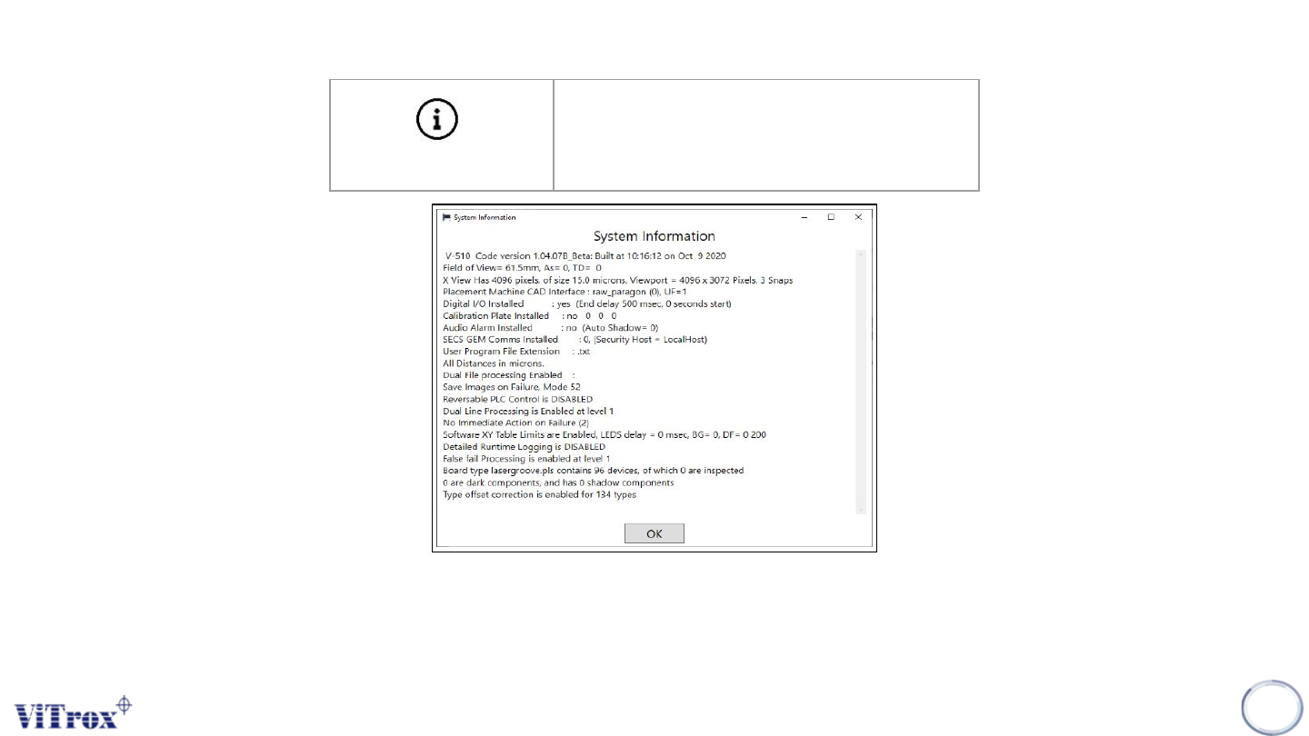 Pressing System Information brings up the dialogue box shown in the figure below. It also writes the C:\cpi\log\about_gsi.txt file. This