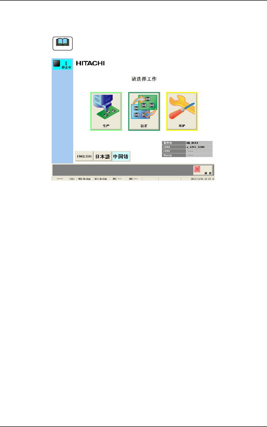 自检测一结束,[POWER ON] 按钮变为黄绿色,在触摸屏上显示初始界面。