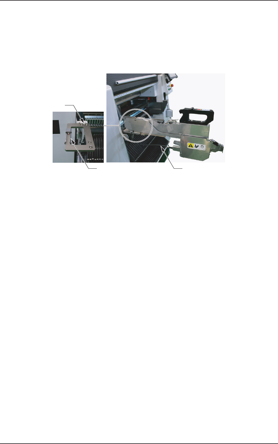 请在送料器安装台完全下降的停止状态下装卸送料器安装台用连