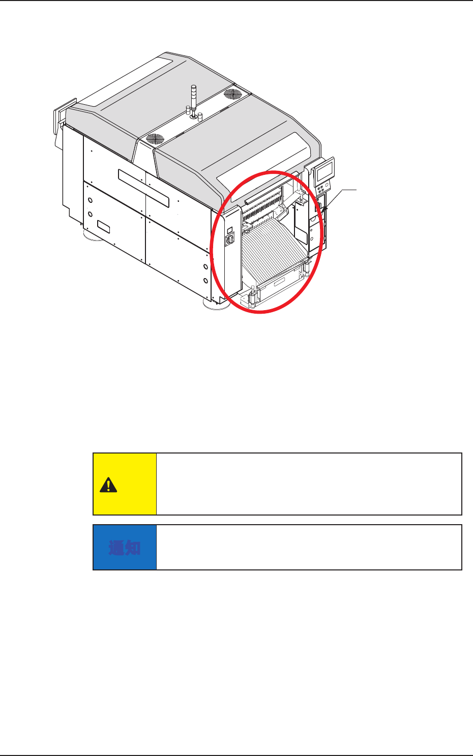在主机上安装批量更换推车时,请注意手不要撞到机盖。