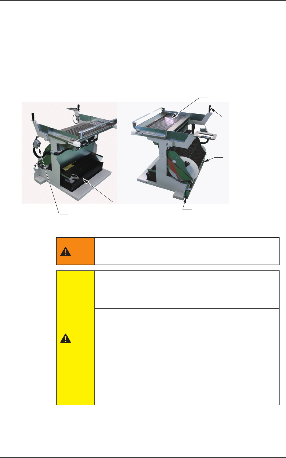 带式送料器掉落可能会导致足部受伤或送料器损坏。