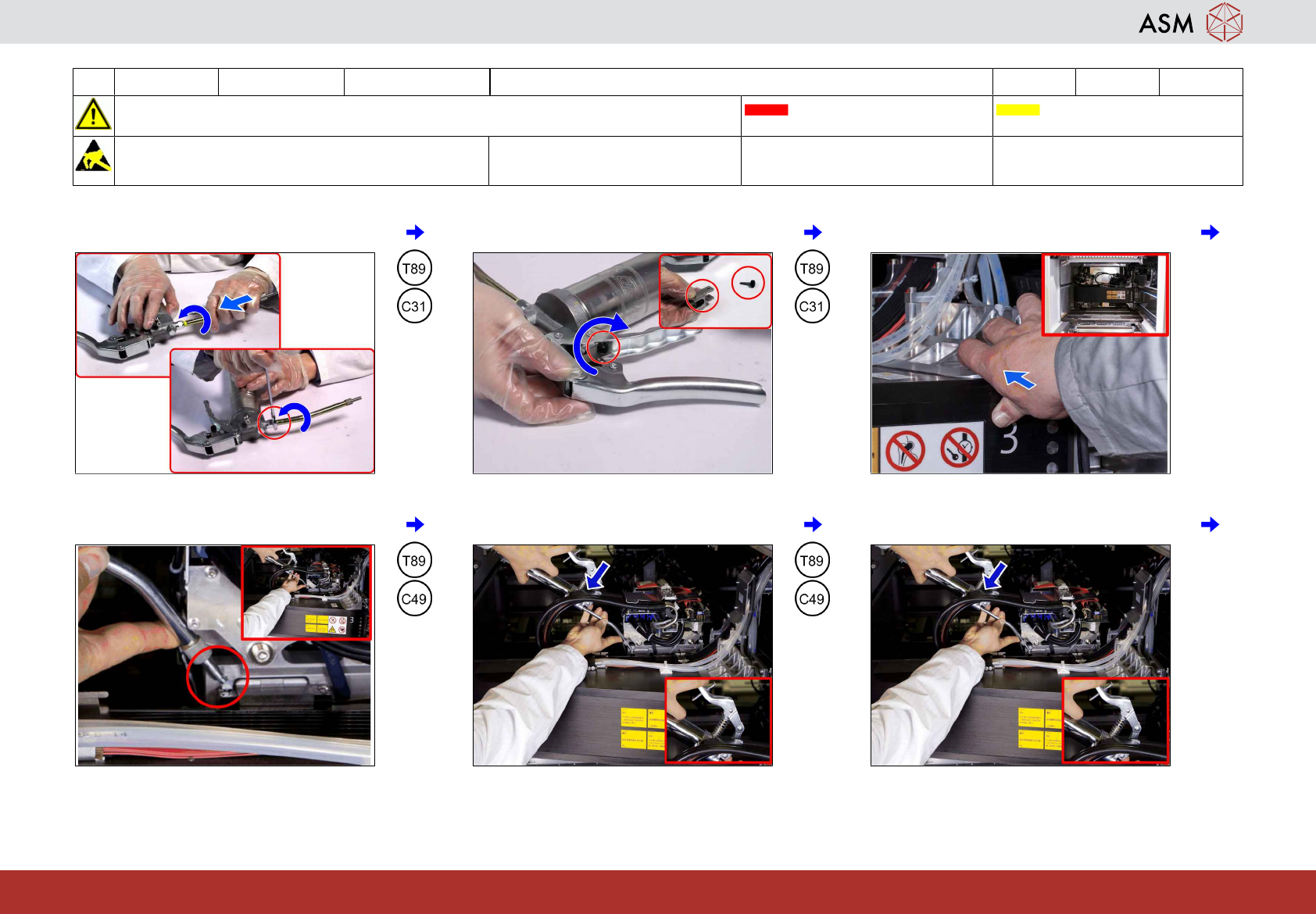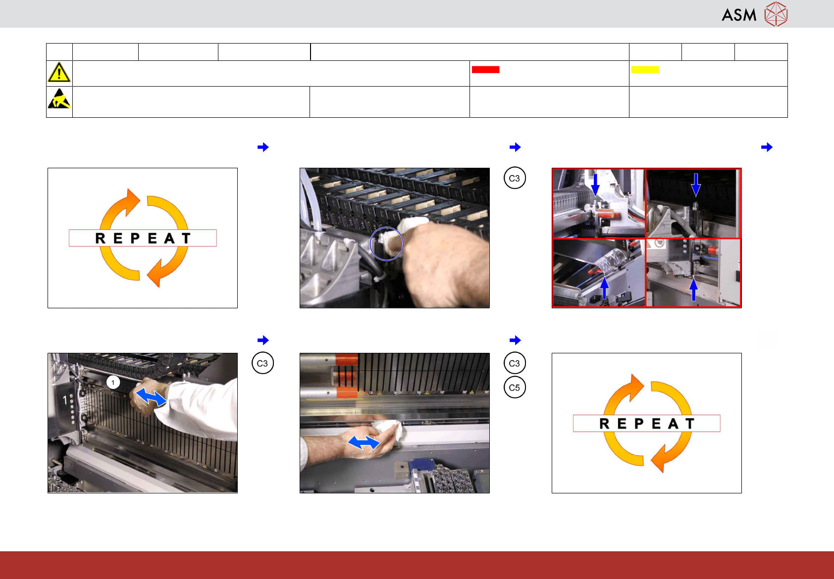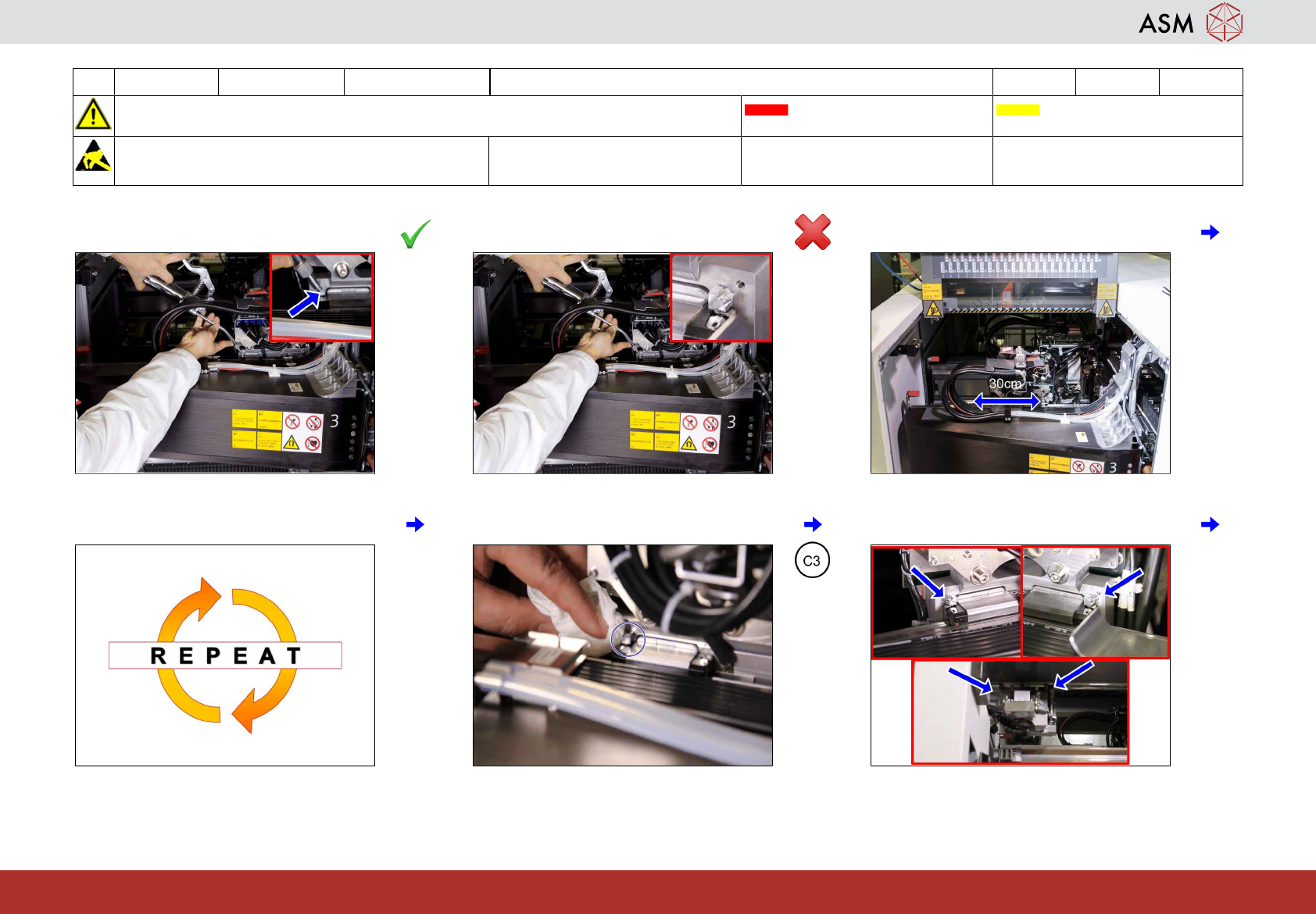 9 WF4 X_系列 S 润滑引导轴承,清洁线性引导装置以及 X 轴光栅尺 5分钟 1 / 3 注 意 开 始 维 护 前 , 请 参 阅 用 户 手 册 中 的 安 全 说 明 贴片机状态 关闭 传送系统空 注意!遵守防静电守则 工具: T89 易损件: 耗材: C3、C5、C31、C49 www.asm-smt.com 1 安装 X 轴润滑脂喷嘴转接器。 2 将 0.15 克限制块装到油枪。 3 将悬臂移动到便于触及 X 轴的位…