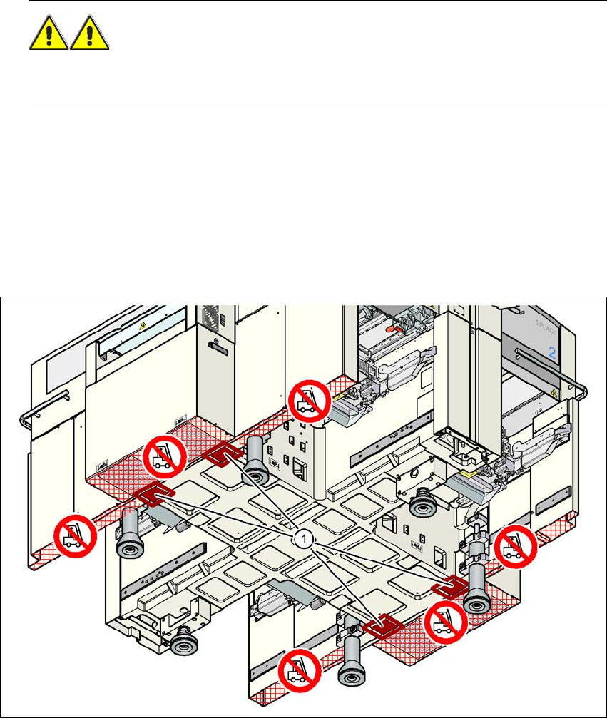 - 叉子的间距必须在 800 到 900 毫米之间。叉车的插入表面见图 4.3 - 29
