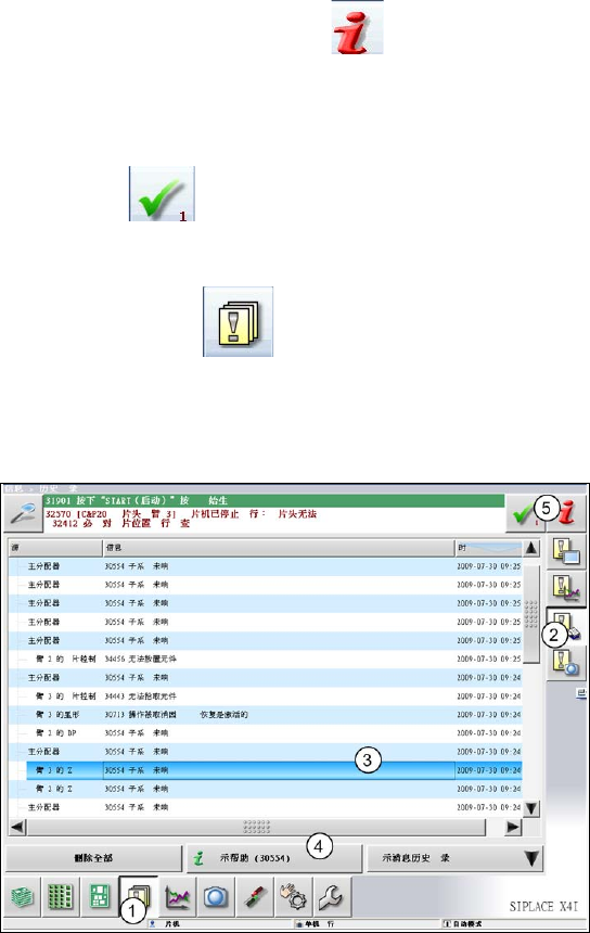 如果在贴片机工作时出现错误,则会在用户界面的状态区中以红色显示错误消息。 错误信息符号