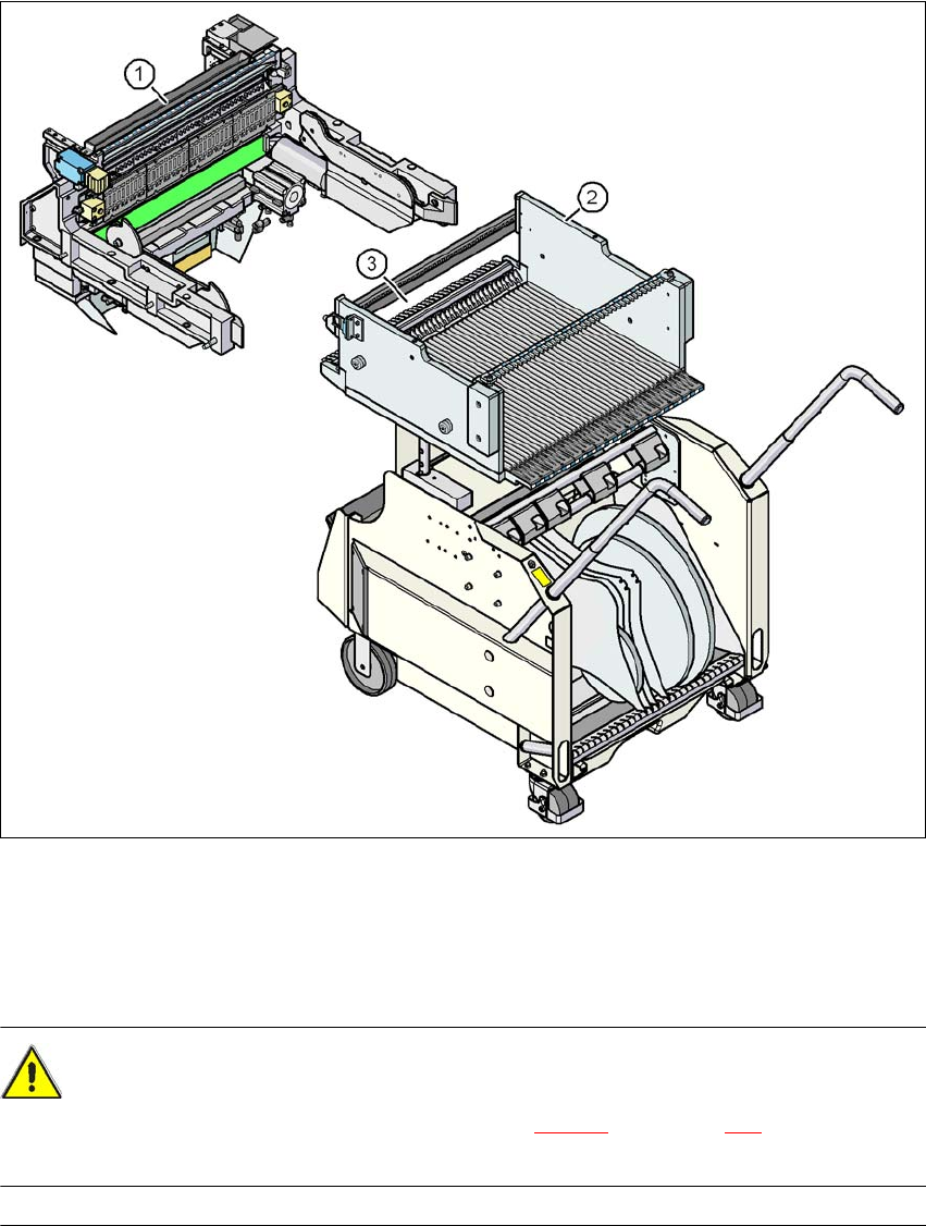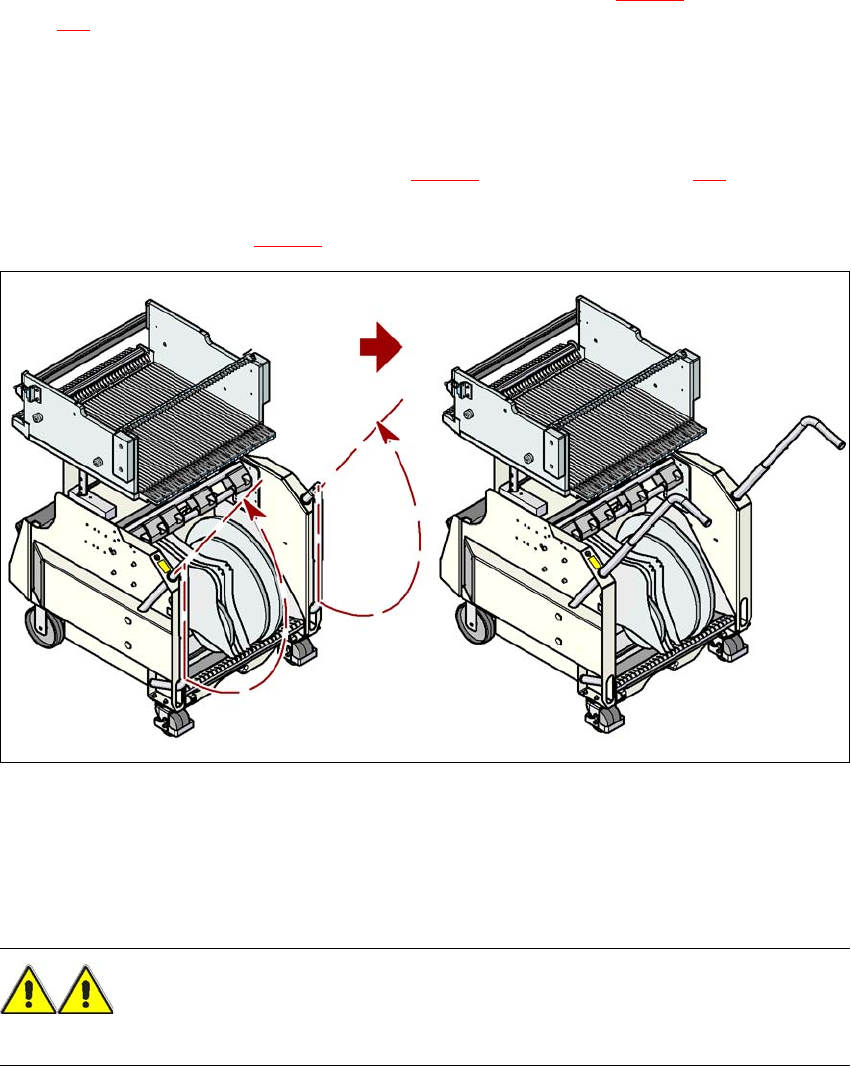 -> 记住,满载供料器组件的料车倾斜 20°或更大的角度时,会发生侧翻或前倾。