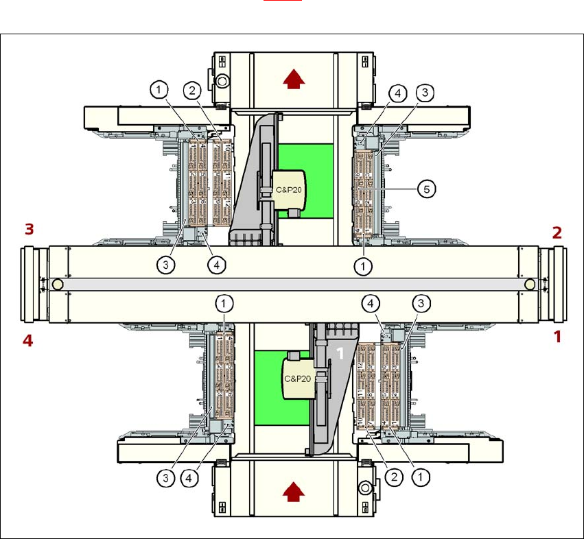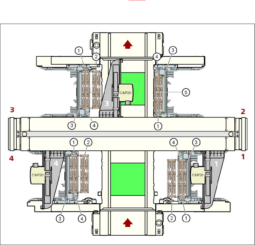 X4I 贴片机的吸嘴交换器 (见图 6.1 - 2,第 353 页)以及 X4、 X3 和 X2 贴片机上的 “1 排”吸