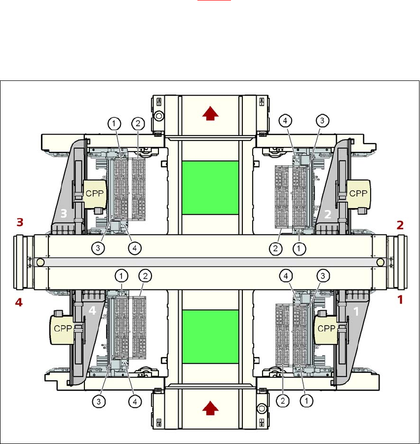 可以在 CPP 贴片头的位置 1、2、3 和 4(图 6.1 - 14 中的 1 和 2)安装一到两个吸嘴交换器。 这