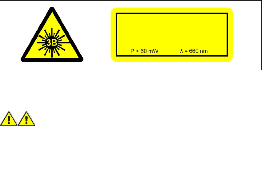 - 操作传感器时,始终需要遵守关于 " 激光设备辐射安全 "VDE 0837 相关规定以及德国事故预