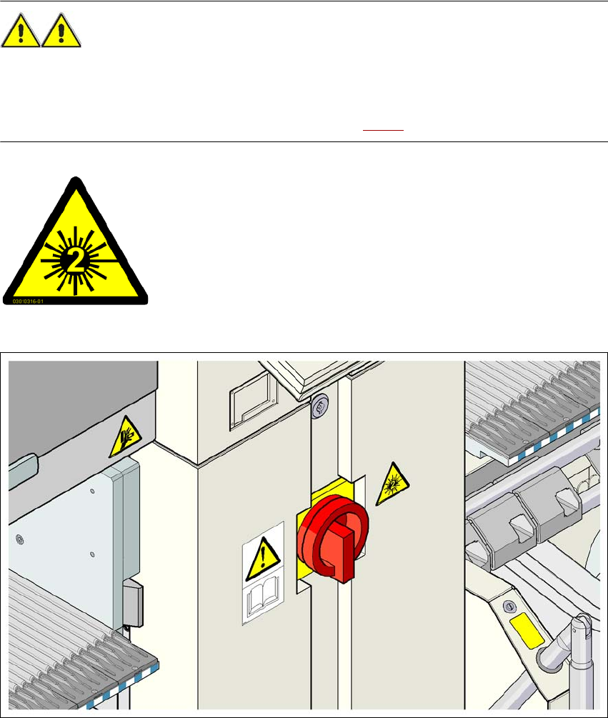 6 贴片机扩展部件 用户手册 SIPLACE X 系列 6.9 3D 共面性传感 器 源自软件版本 SR.70x.xx 2011 年 1 月中文版 412 6.9.2 将机器标记为警告标签 W216 警告 6 - 当安装了 3D 共面性传感器时,机 器必须被分类为二类激光。 - 在贴片机上标以警 告标签 W216" 二类激光 " ,部件号 03010316-xx 。 – 在外壳的主电源开关旁边张贴警告标签 W216 …