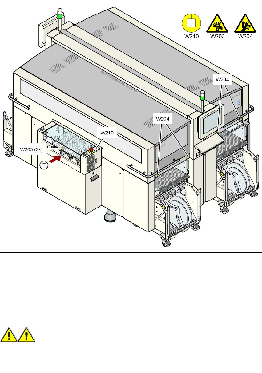用户手册 SIPLACE X 系列 2 安全操作 源自软件版本 SR.70x.xx 2011 年 1 月中文版 2.2 警告标签 45 2.2.1.1 警告标签 W201 2 位置 W201 ,见第 43 页图 2.2 - 1 ,部件号 03009338 -01 (每台贴片机的编号: 1 ) 2.2.1.2 警告标签 W203 2 位置 W203 见 第 43 页图 2.2 - 1 和第 44 页图 2.2 - 2 ,部件号 03009…