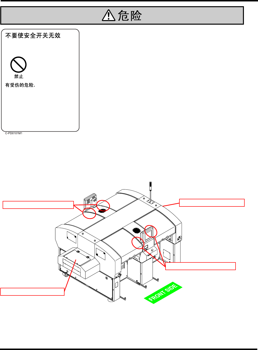 本机在前面安全盖和后面安全盖上共有