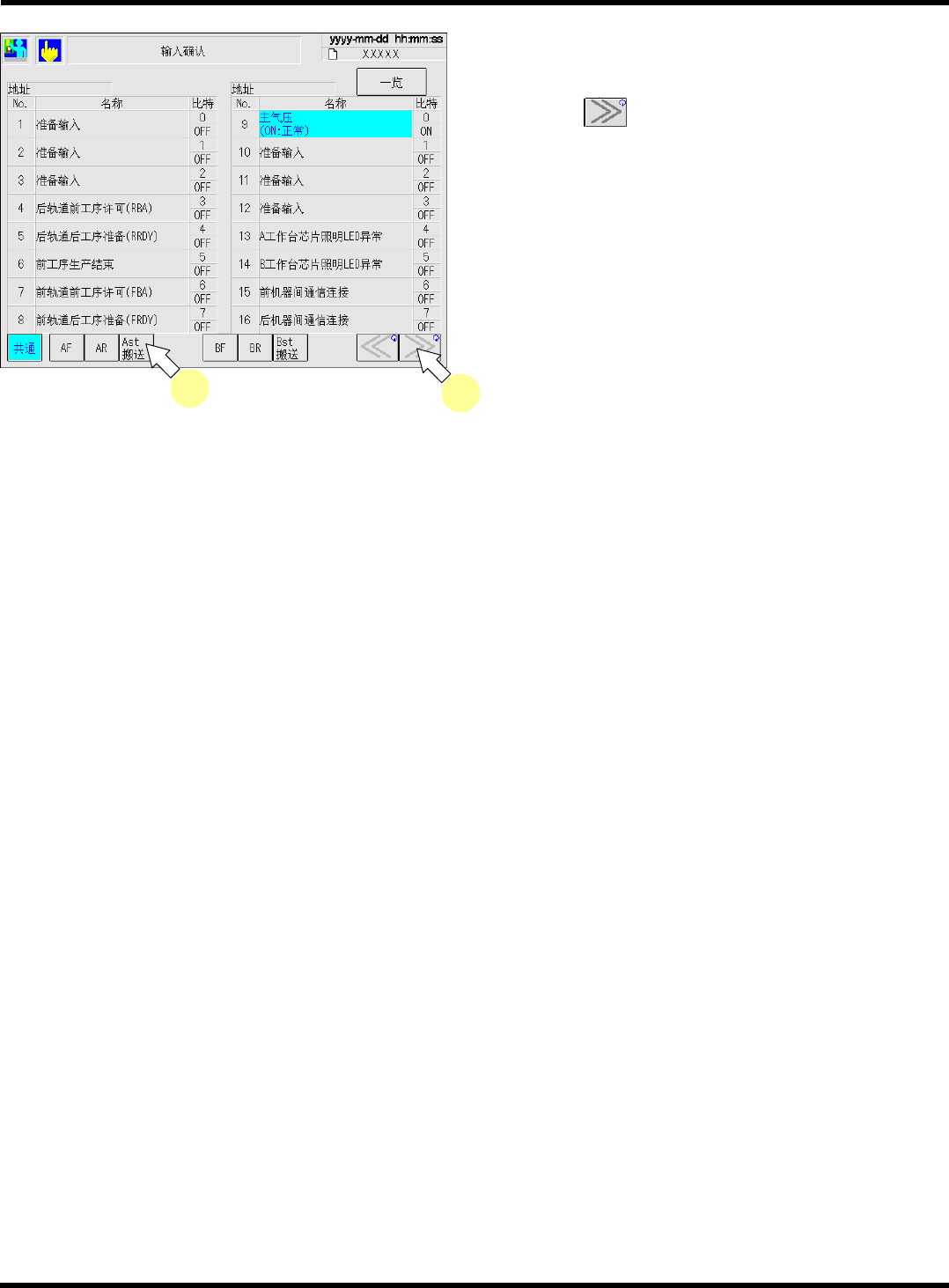 CM602-L 维修手册 1.6 560 小时检查一次 [ 每月一次 ] Page 1-136 8. 按 [Ast 搬送 ] 。 9. 按一次 按钮。 • 打开 A 工作台后侧的盖, 确认画面上的 No. 18 ‘A 工作台后安全盖 ’ 的显示由蓝色变成了灰色。 • 关闭 A 工作台后侧的盖, 确认画面上的 No. 18 ‘A 工作台后安全盖 ’ 的显示由灰色变成了蓝色。 EJM8A-C-MMC01-A04-01 EJM4A-Ma-00…