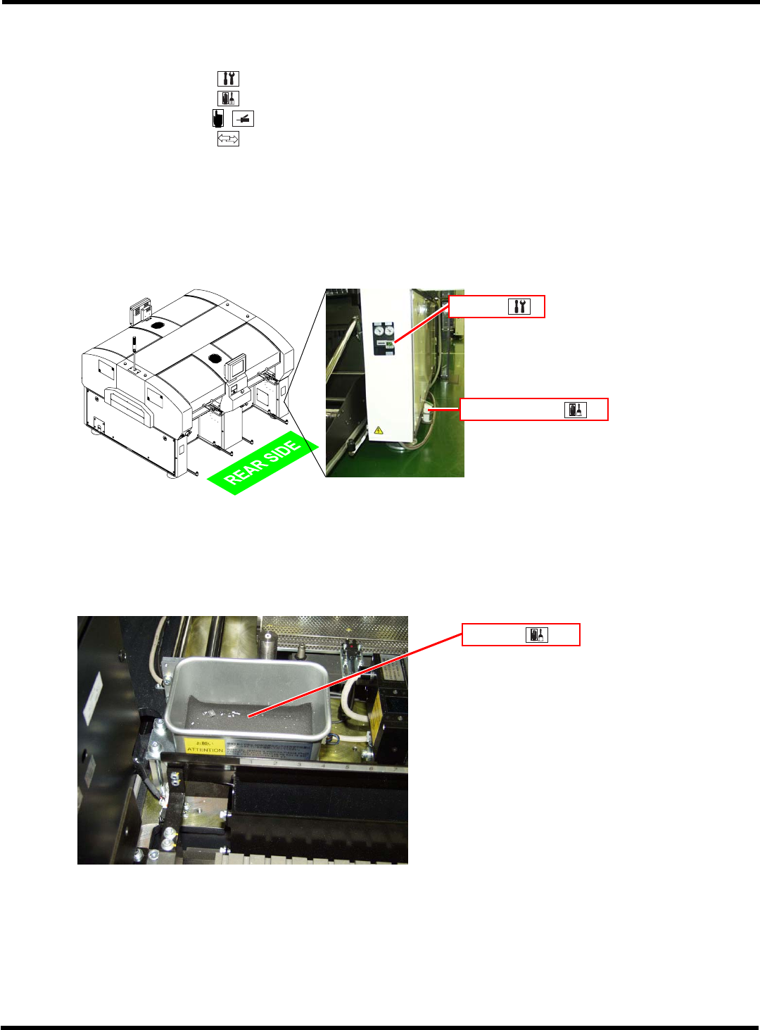 CM602-L 维修手册 1.1 维护的概要 Page 1-15 < 多功能吸头 > 周期 ( 时间 ) No. 装置名称 检查·注油位置 检查·注油内容 24 140 560 1500 − 6000 18000 参照 1 Z 轴滚珠丝杠 注油 1.6.9 2 反射板 清扫 1.6.10 3 过滤器 清扫 1 移载吸头 4 吸嘴座锥形面 清扫 1.4.3 2 吸嘴座 1 夹具爪 涂敷润滑脂 1.6.5 1…