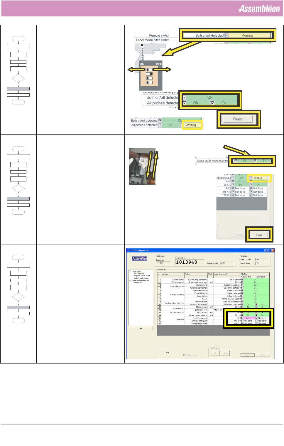 5.5.1 从分析工具执行的供料器修理操作: