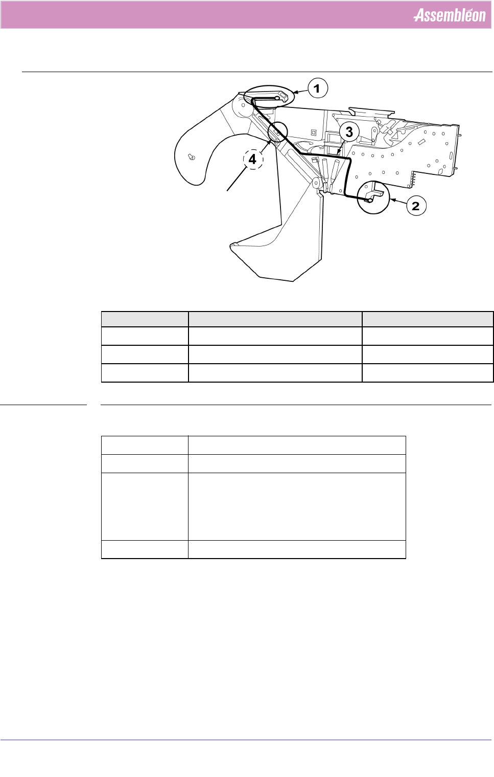 选件手册 4022 593 51431 5-32 供料器服务店 07.01 维修 TTF 5.5.8 模块 4 :卡杆装置 1. 模块概述 • 表 5-10 中介绍了可在当 地修 理的项目。 表 5-10 模块 4 : 更换部件 2. 把手装置 + 线缆更换 下面介绍同时更换把手和线缆的过 程。 项目 说明 节 1 + 3 把手装置 + 线缆 5.5.8 步骤 2. 2 夹固单元装置 5.5.8 步骤 3. 4 微动开关 项目 1, 把…