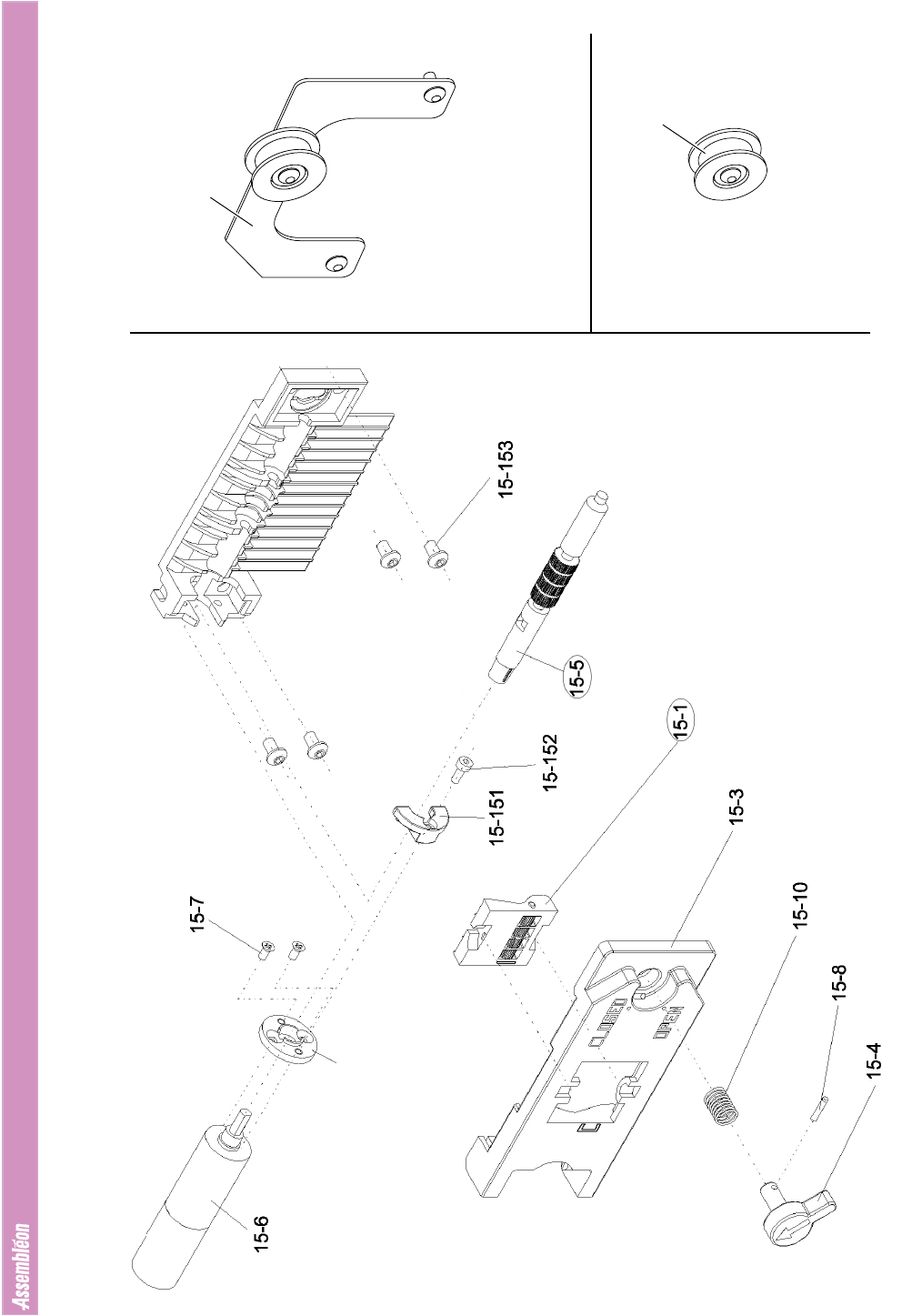 REMARK: The complete topfoil peel-off assembly will be delivered without rotation lock 15-151 and fastening item 15-153.