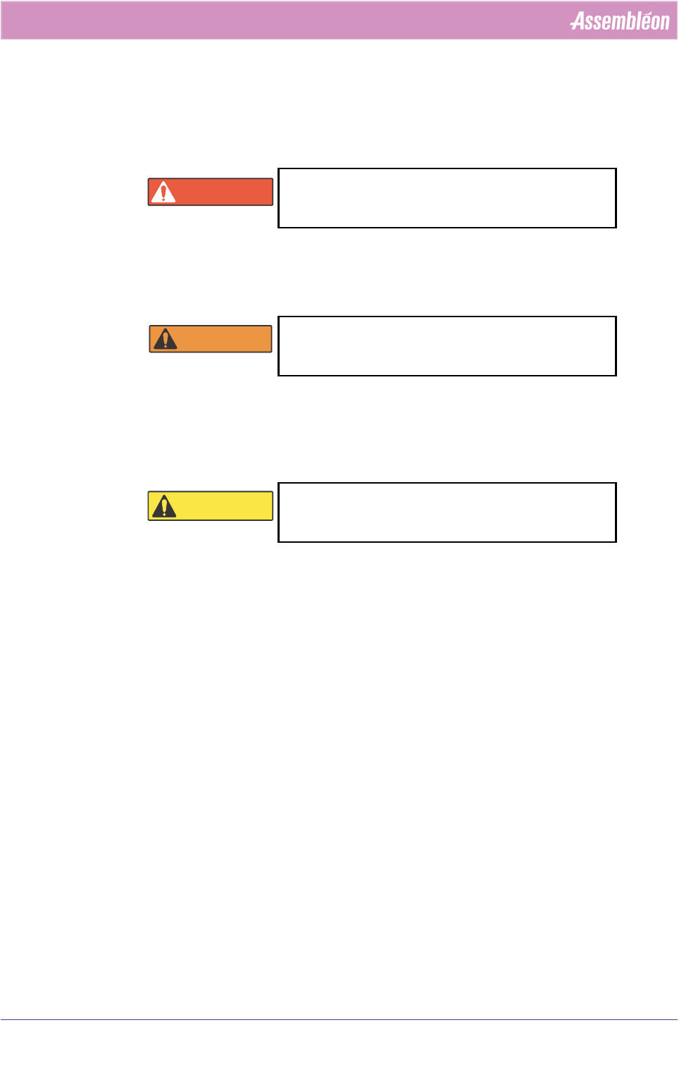 引起注意以防人身伤害或危险情形,详情见框内说明。