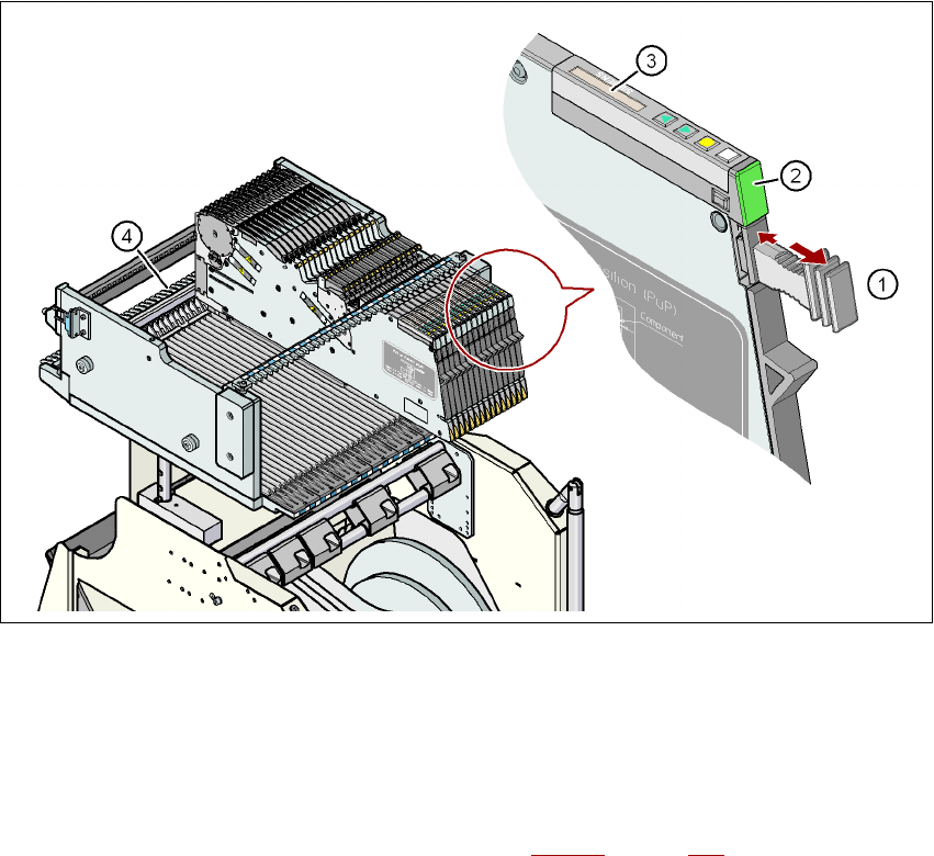 → Extrageţi modulul alimentator din masa componentelor apucându-l de mânerul de extra-