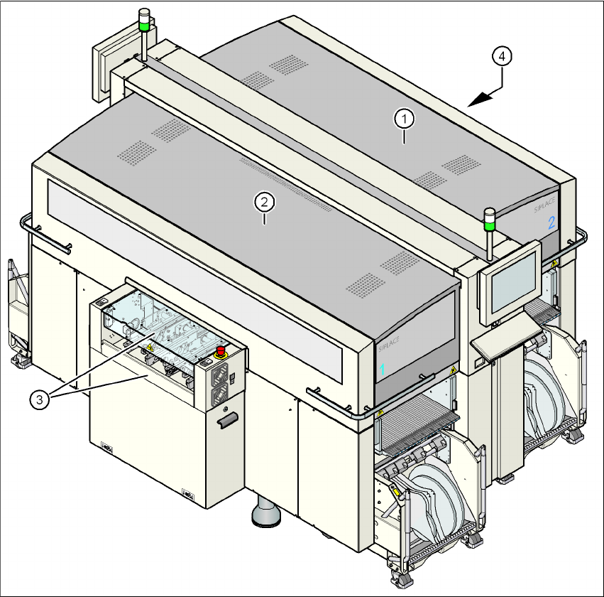 Siguran ţ a exploat ă rii Instruc ţ iuni de utilizare SIPLACE Seria X Dispozitive de siguran ţă Începând cu versiunea software SR.70x.xx Edi ţ ia 01/2011 72 2.6 Dispozitive de siguran ţă 2.6.1 Capote de protec ţ ie 2 Fig…