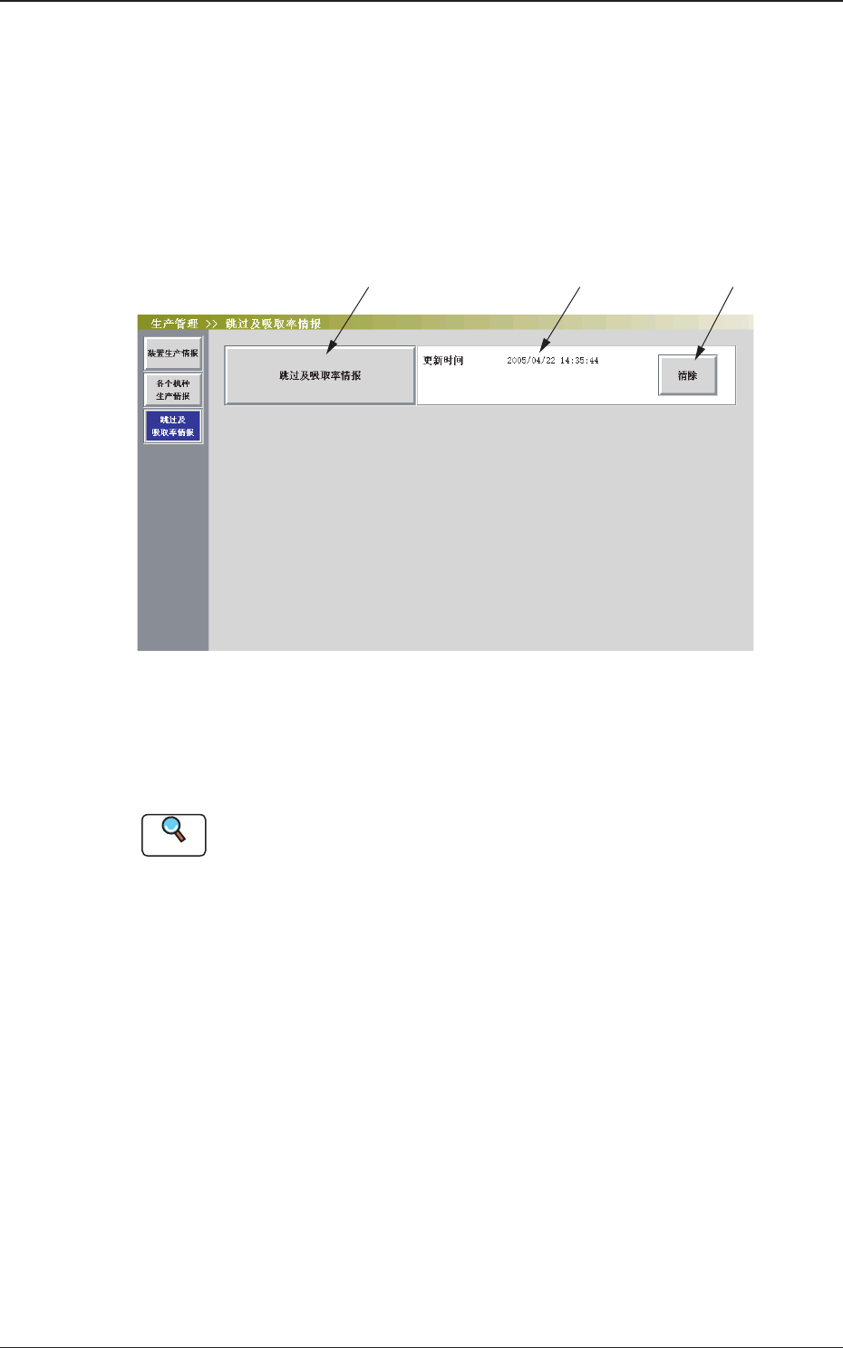 在 “ 生产管理 ” 界面中,按[ 跳过及吸取率情报] 按钮,显示以下