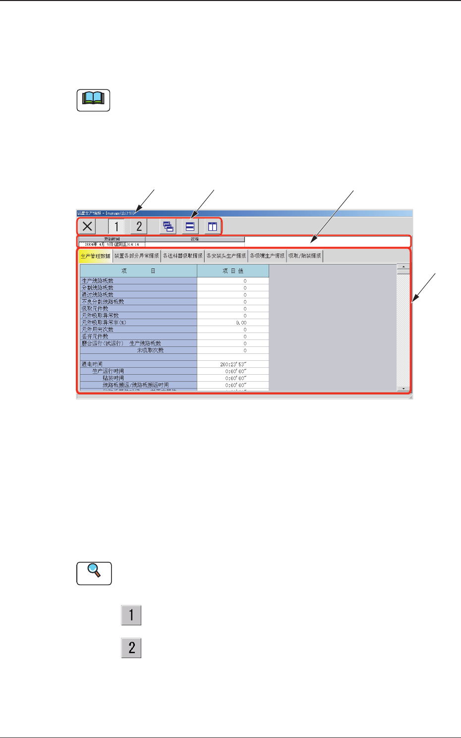 对只在 “ 装置生产情报 ” 界面中使用的图标进行说明。