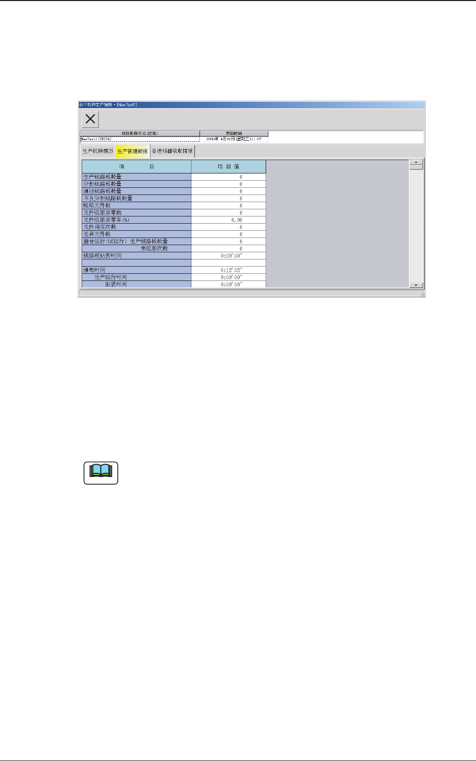 3.2 3.2 3.2 3.2 3.2 生产管理数据 生产管理数据 生产管理数据 生产管理数据 生产管理数据 在 “ 各个机种生产情报 ” 界面中,按 [ 生产管理数据 ]Tab ,显示以 下选项卡。 Fig.3E 1 4 Fig.3E 1 4 Fig.3E 1 4 Fig.3E 1 4 Fig.3E 1 4 “ 生产管理数据 生产管理数据 生产管理数据 生产管理数据 生产管理数据 ” 选项卡 选项卡 选项卡 选项卡 选项卡 一览显示每…